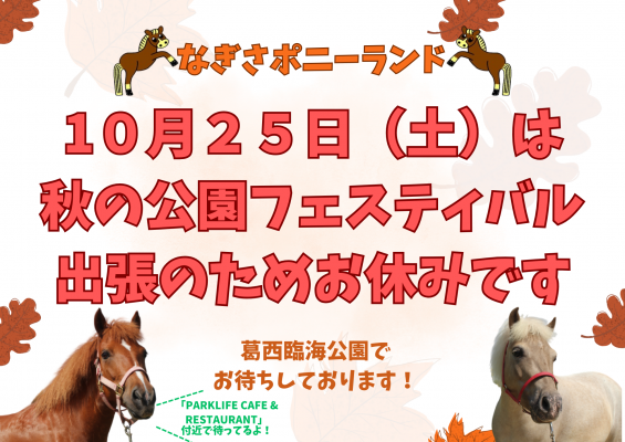 なぎさポニーランドのポニーたちが秋の公園フェスティバルに出張します!