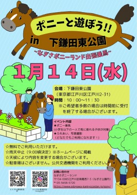 - 【なぎさ】1月14日(水)下鎌田東公園移動ポニーお知らせ