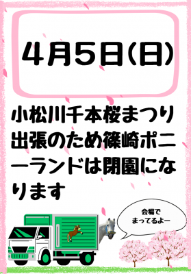 - 【篠崎】小松川千本桜まつり出張乗馬と休園のお知らせ