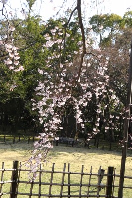 まだ満開ではなく、咲き始めでした。ヨシノシダレで有名なのは、国立博物館の玄関前のもので、樹形がきれいで、咲くときれいに丸く枝垂れています。