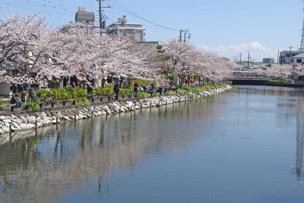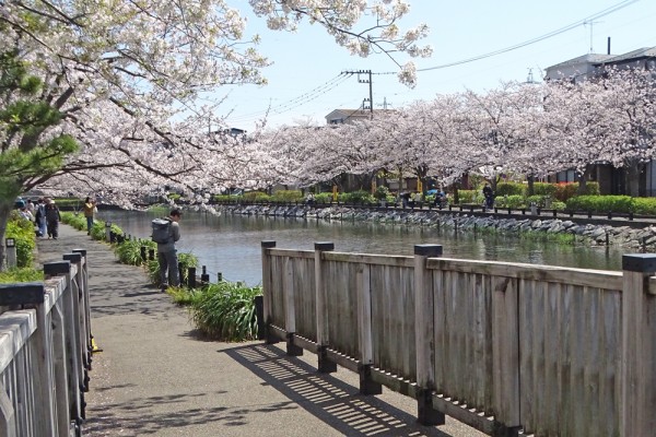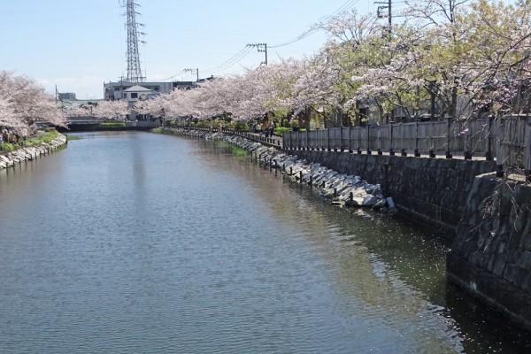 櫓橋から東側を撮ったものです。両岸の桜はほぼ満開です。