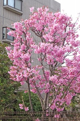 西葛西のマンションの敷地に咲いていたジュウガツザクラです。