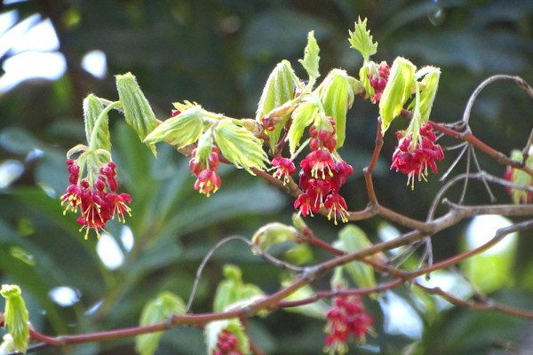 ハウチワカエデは雄花、雌花があるのですが、写真は雄花ばっかりのようで、雌花がどれか、私にはわかりませんでした。