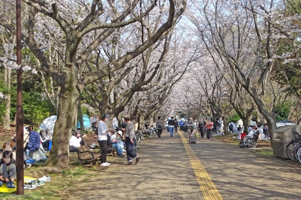 た。駅前中央通り西側の桜はまだ7分咲き程度でした。でも桜並木は満開で多くの人が花見を楽しんでいました。