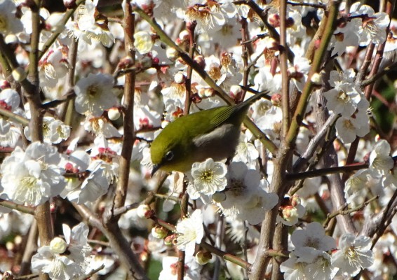 梅林の梅にメジロもきていました。