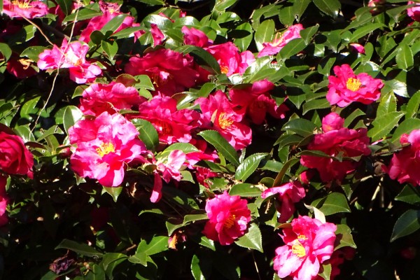 葛西臨海公園の西側に赤いサザンカがきれいに咲いていました。