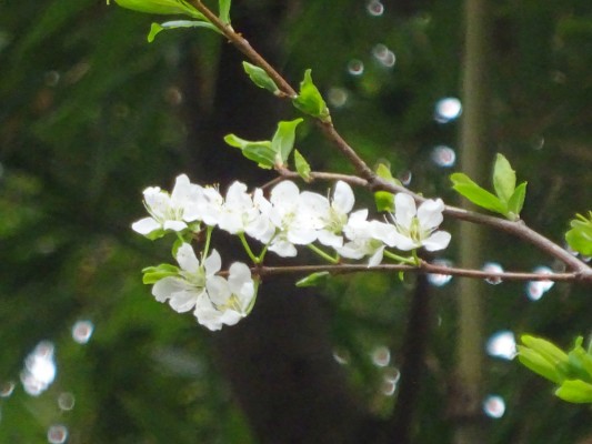 スモモの花は白く、小さい花で、あまり目立ちません。