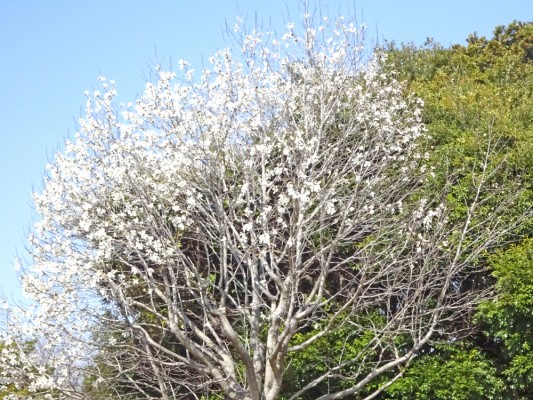 葛西臨海公園・鳥類園のコブシです。前の写真に比べて、横に広がらずに、