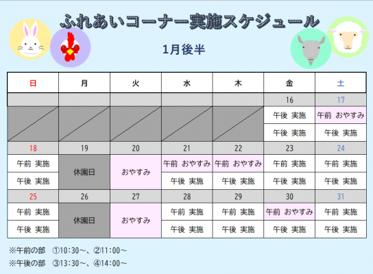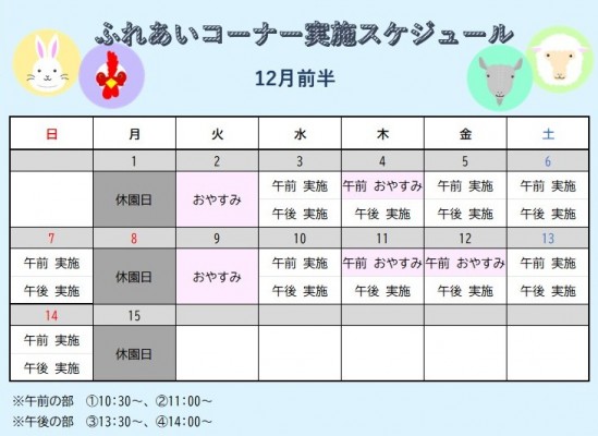 ※休園日の翌日のふれあいコーナーはお休みさせていただきます。