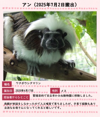 背景がピンク色の場合: 他園館へ移動した動物です。